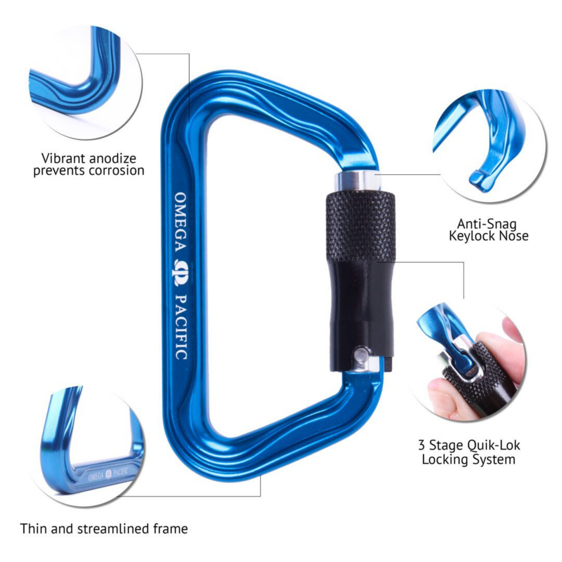 - Vibrant blue anodize to aid in corrosion prevention and greater visibility
